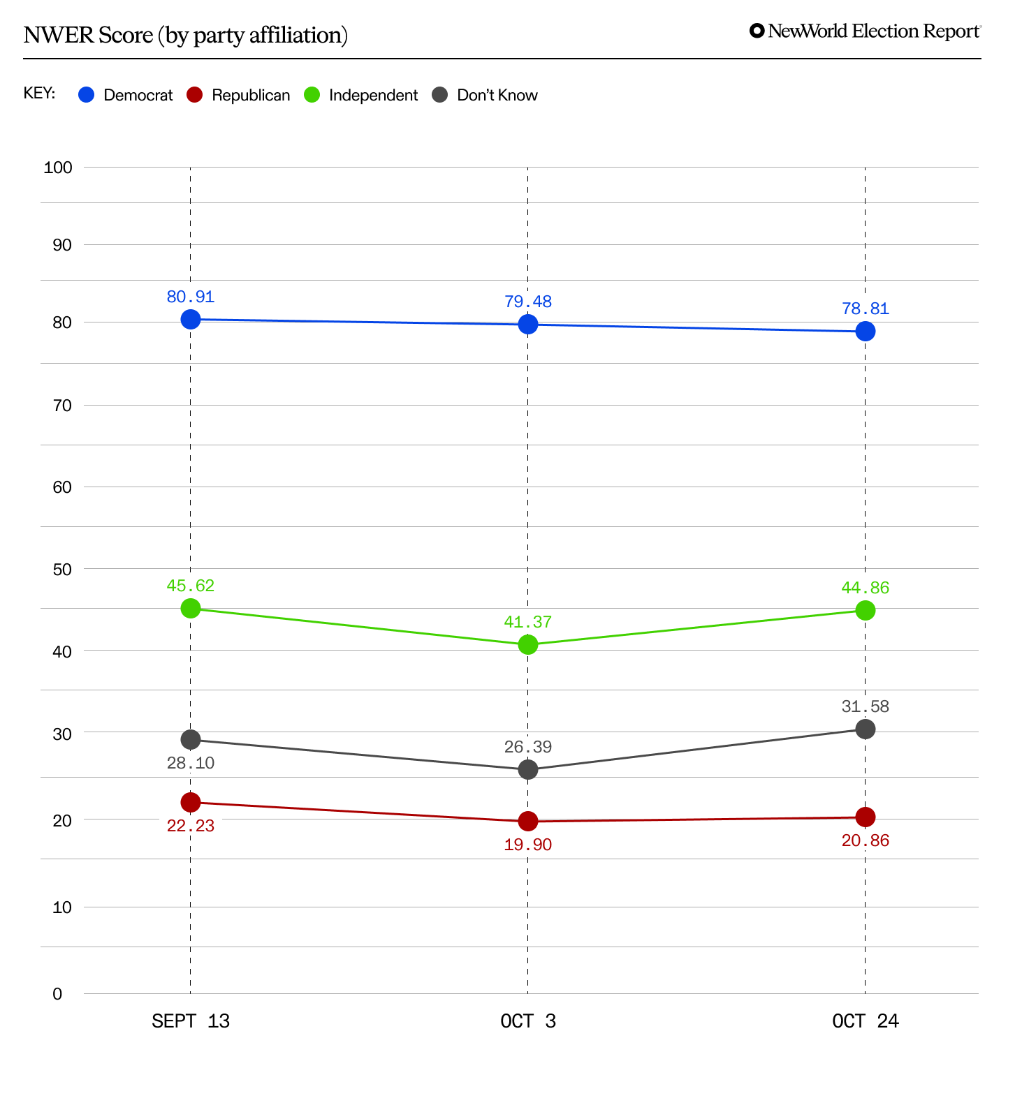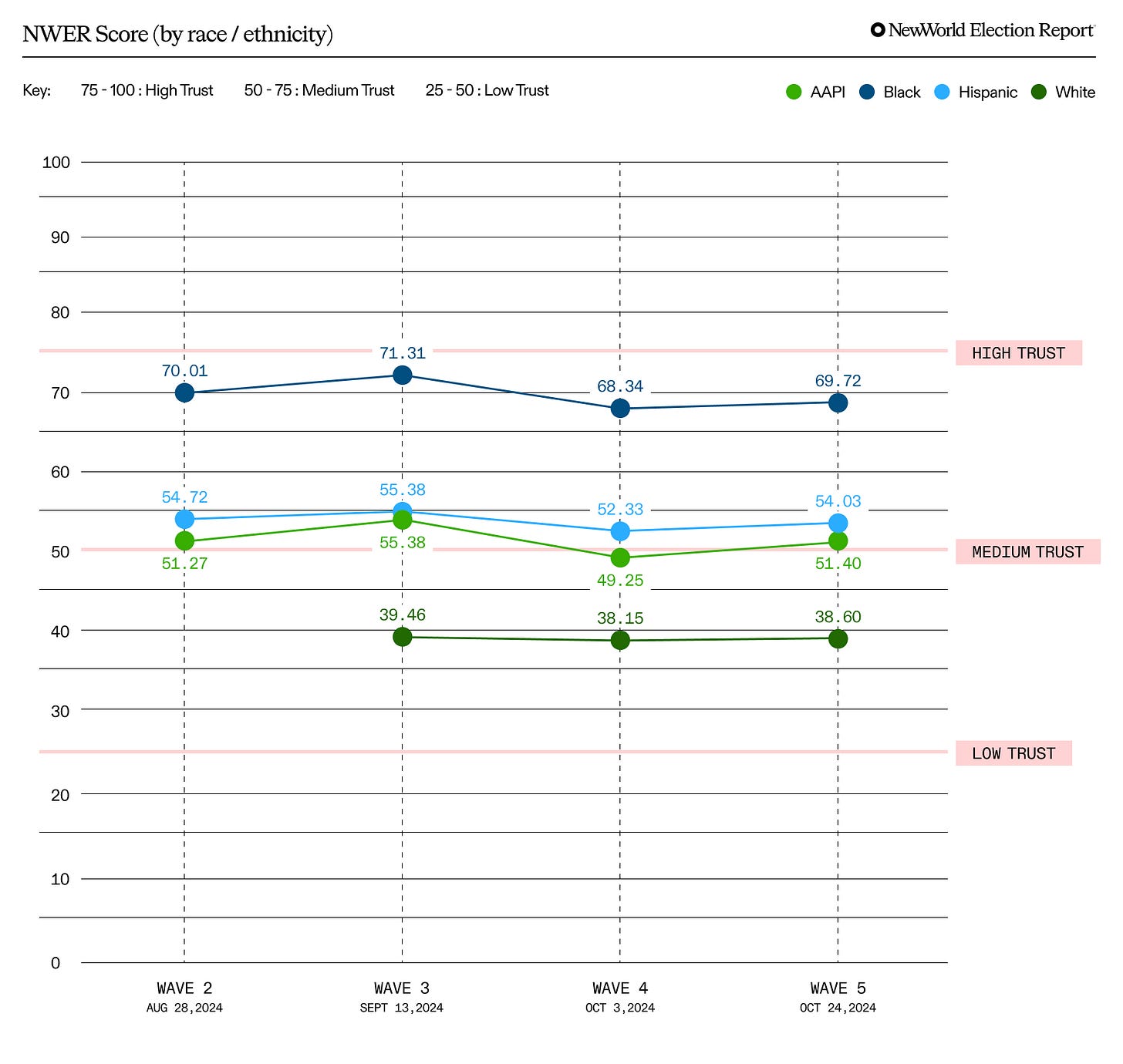 Obviously registered Democrats are more likely to trust VP Harris but the stability of these New World Trust Scores through the campaign holds for people of any party affiliation.
