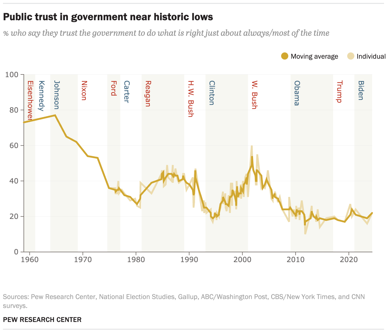 This is Pew’s look at trust in government across the last 7 decades.