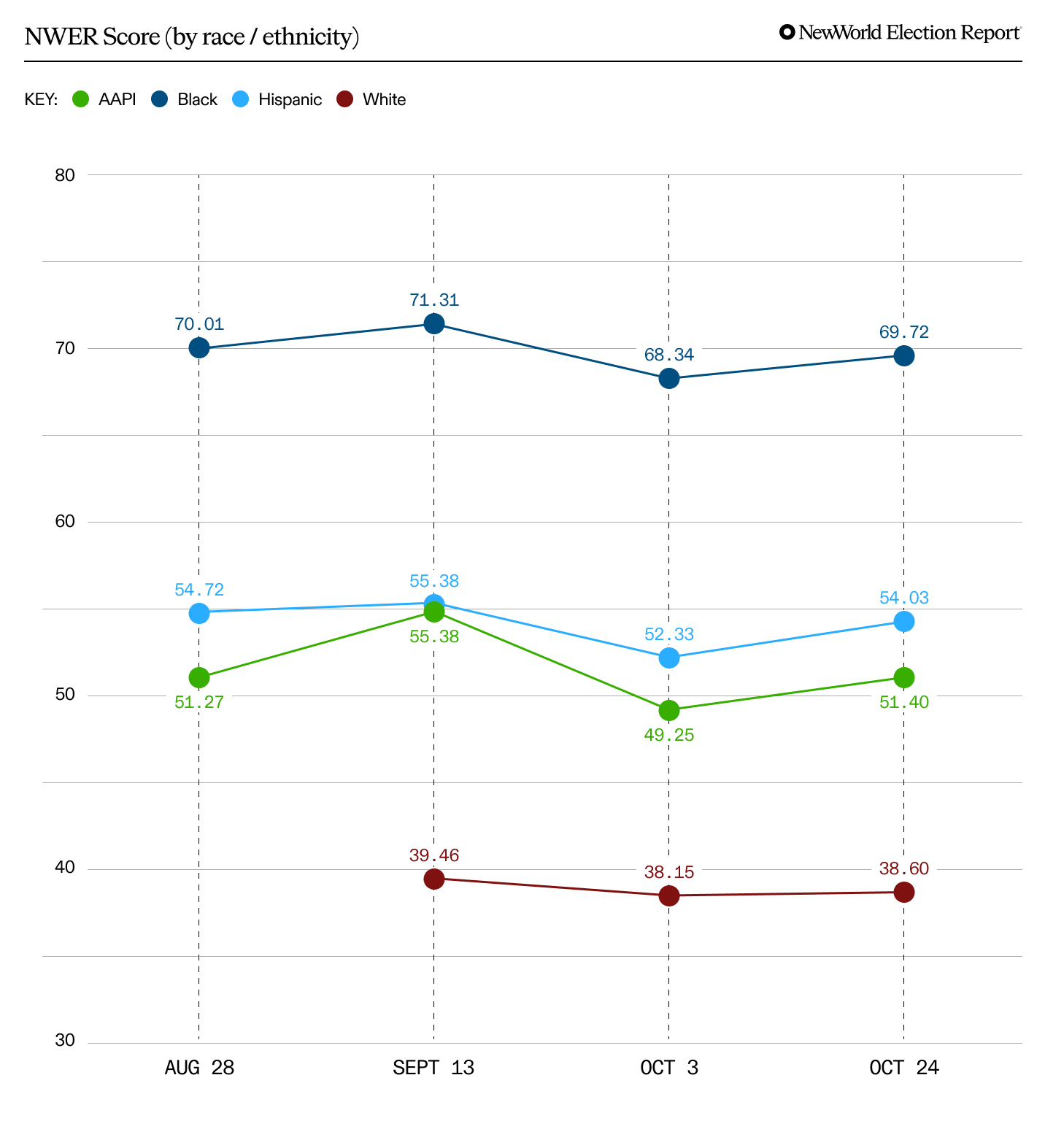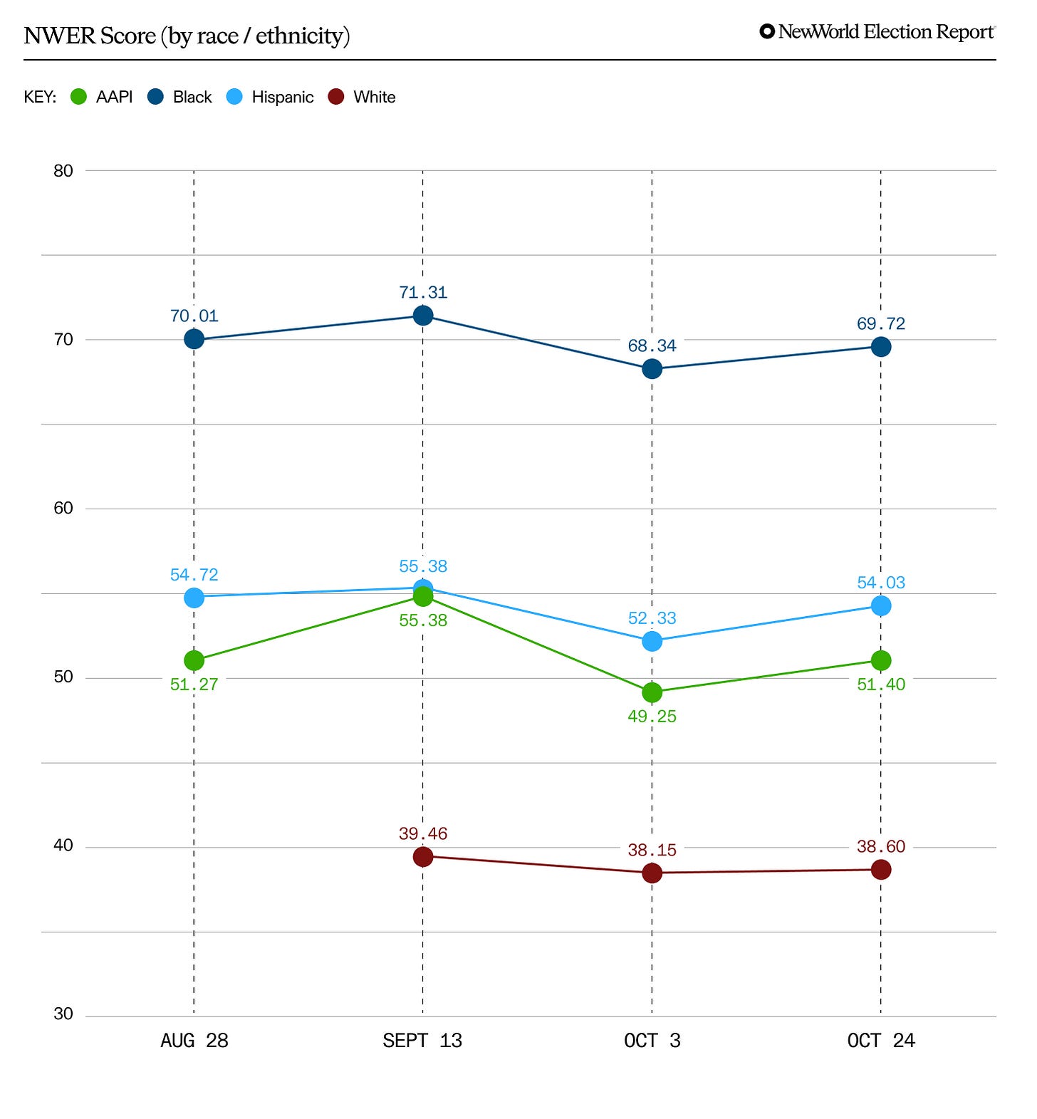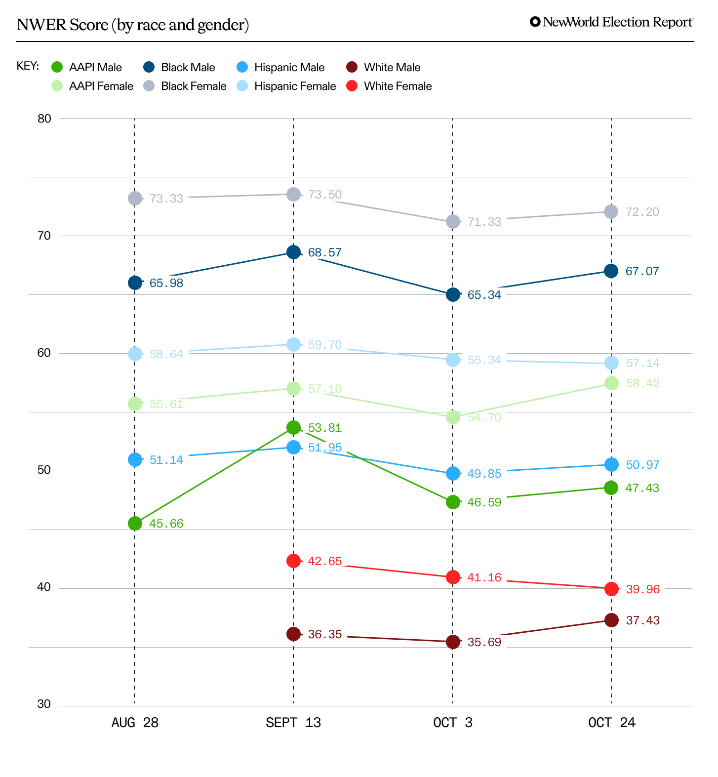 The Election Report has been tracking the attitudes of voters with less than a college degree, with an emphasis on Black, Latinx, and AAPI voters, since VP Kamala Harris announced her campaign. We’ve shared highlights from the data as it landed, but now we can look back across the months to see what changed — and what didn’t.