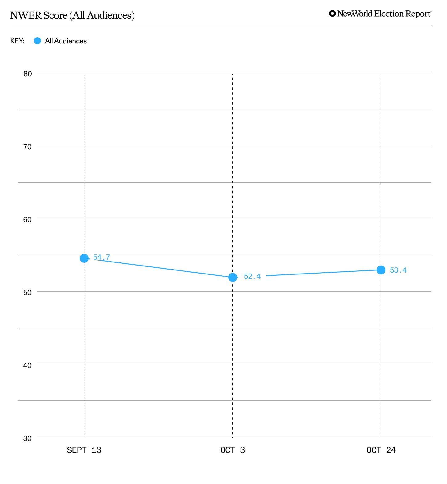 Despite assassination attempts, billions spent on ads, debates, and many, many memes, our level of trust for Harris has barely moved2. A lot of action; little traction.